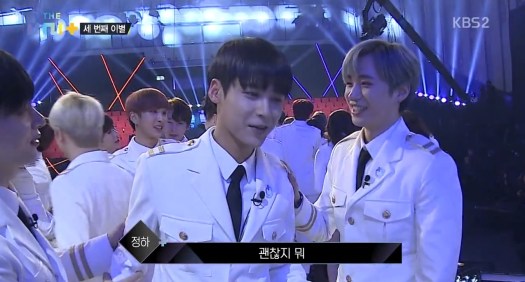 Before the elimination takes place, unlike the girls team, the guys went to Gag Concert to promote their songs. ^^ Rokhyun be like “you should choose our song (Mine) cos people only remember ours and our dance” lmao 😀