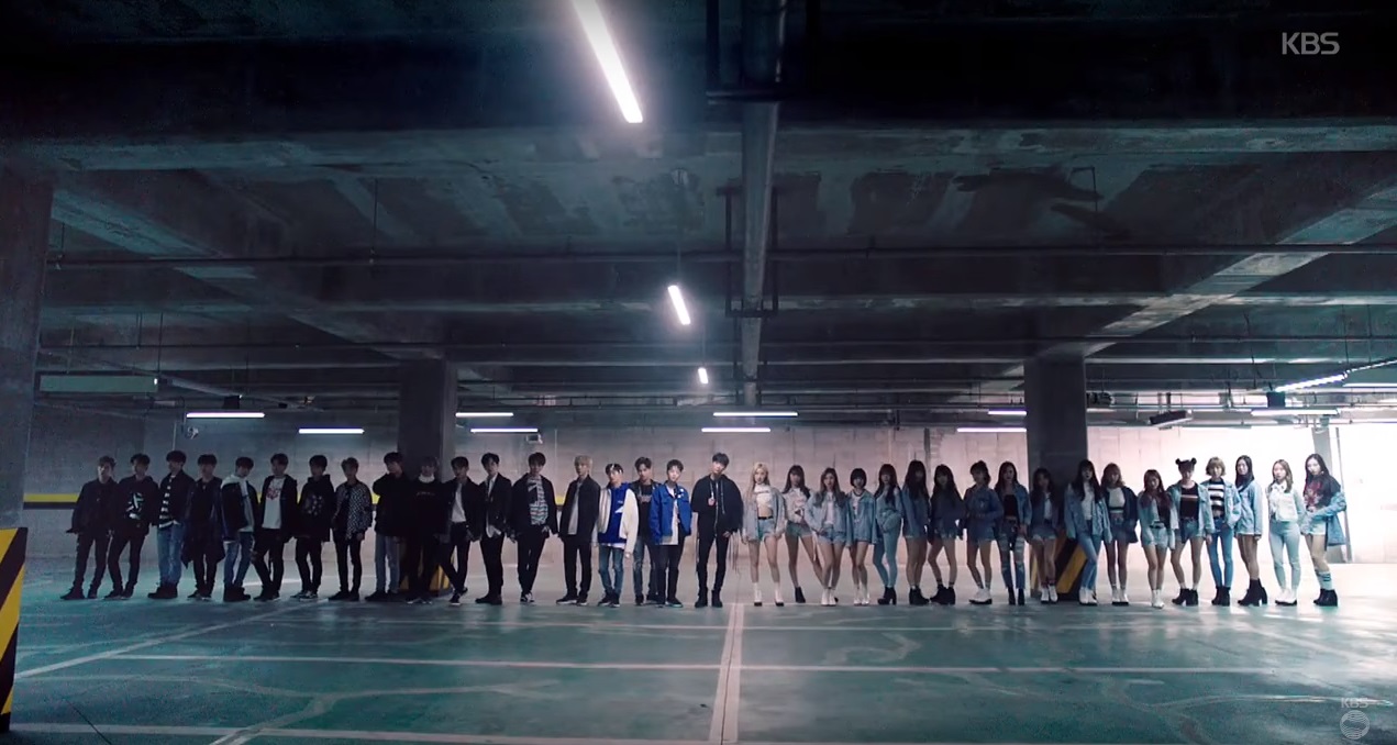 As soon as the elimination process ended, they announce the final 4 newly-produced songs in which every Unit will be separated into 2 teams. Unit G’s songs are ‘Ting’ and ‘You & I’. The songs are definitely not strong. It’s kinda cute, bubbly, like any other cute kpop girl groups out there. While Unit B’s songs are strong, powerful suits the boys image. ‘Dancing with the Devil’ and ‘끌어줘’ (Drag Me? Pull Me? unsure on the english title). So! When I first heard the snippets, I am more attracted to You & I and 끌어줘. 🙂