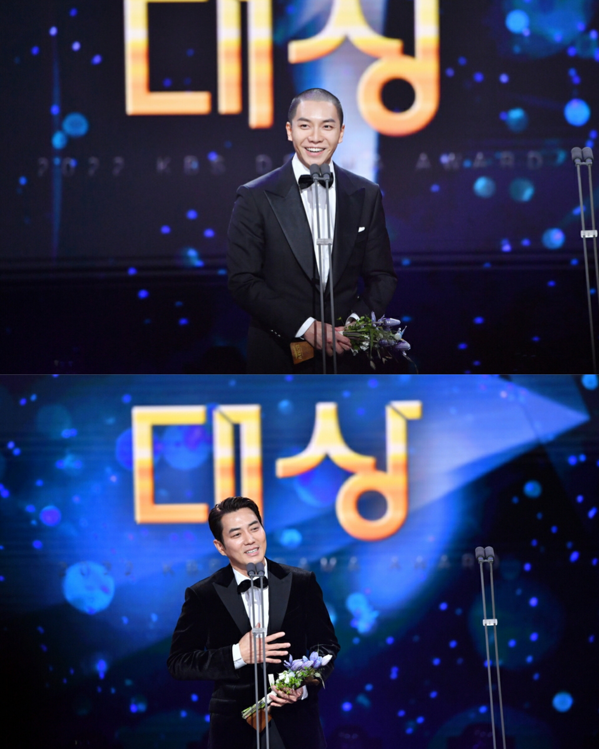 Curtain Call dominated the night with the most win, and historic moments can be seen at this annual ceremony when KBS once again awarded two winners for the Grand Prize. Joo Sang Wook won his first Daesang tonight, through his tireless commitment in “The King of Tears, Lee Bang Won”, and jointly received the honor with Lee Seung Gi “The Law Cafe” who took home his first Daesang as well — the first in acting and third overall, adding to his two other Daesang collections from Entertainment Awards.